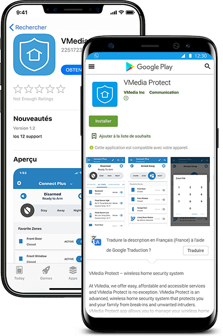Emportez Protection VMedia où que vous soyez. Que ce soit au coin de la rue, au bureau ou en vacances à l’étranger, l’application Protection VMedia vous permet de connaître la situation de sécurité de votre maison.